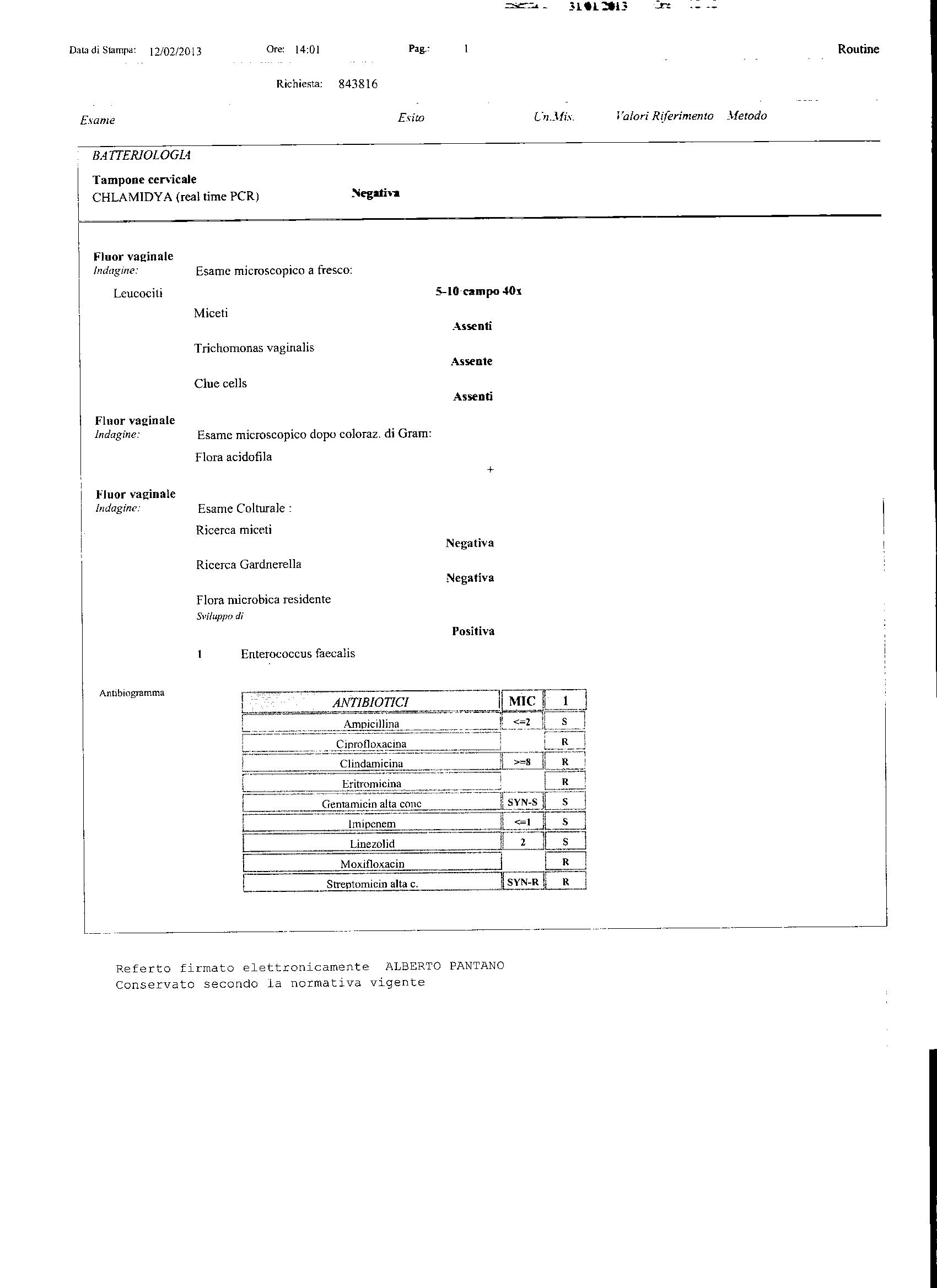 Flora microbica residente sviluppo di 1 enterococcus faecalis (1? sarebbe il quantitativo?)