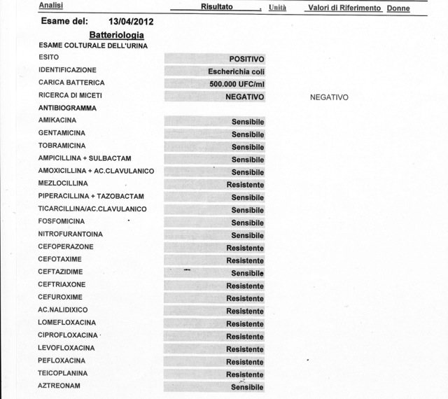L’urinocoltura del 24 gennaio è negativa, ma ci sono 30.000 e.coli.