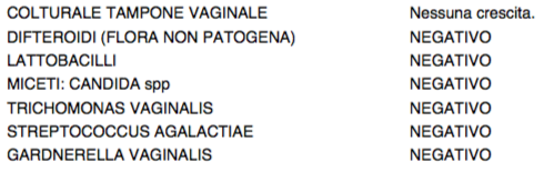 Nel frattempo vi ricordate che cercavo un ambulatorio che mi facesse un tampone vaginale? Ecco l'ho trovato! L'ho fatto martedì scorso al c.d.c a Torino ed è risultato negativo! :grin: Peccato che mi dica che sia negativo anche per i lattobacilli... e questa cosa non sono riuscita a capirla, nonostante abbia provato a chiamare per chiedere.