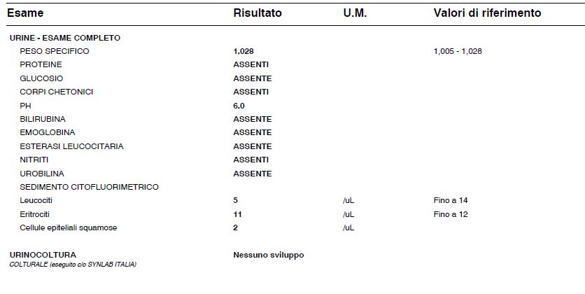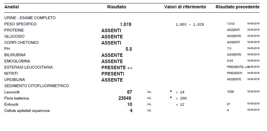 esame urine 07 maggio dopo monuril