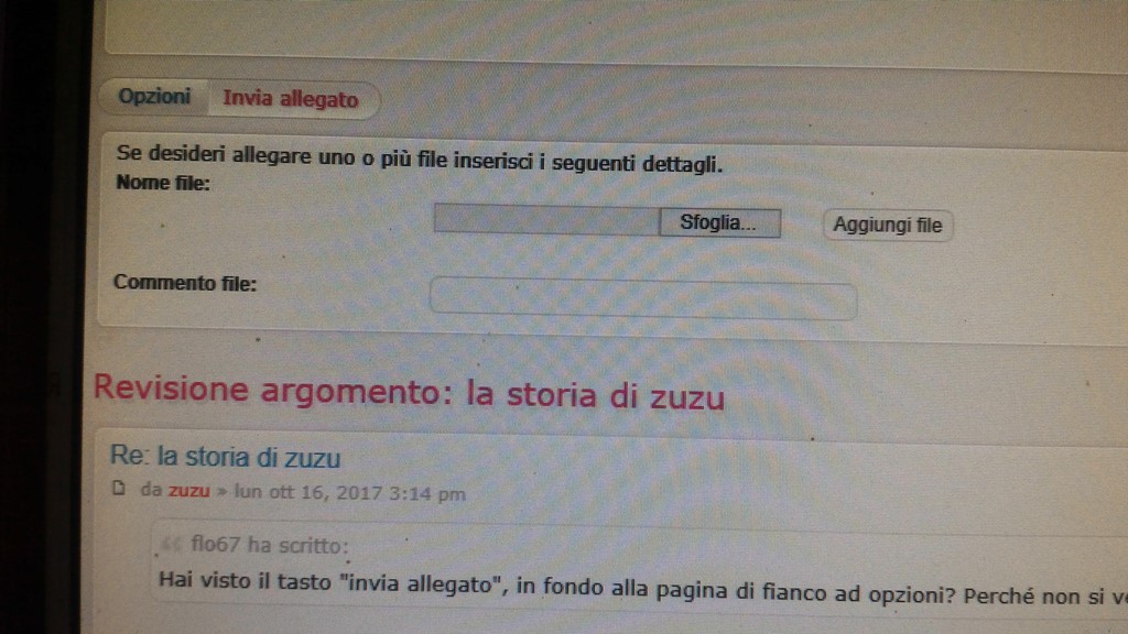flo67 ha scritto:Hai visto il tasto "invia allegato", in fondo alla pagina di fianco ad opzioni? Perché non si vede una mazza