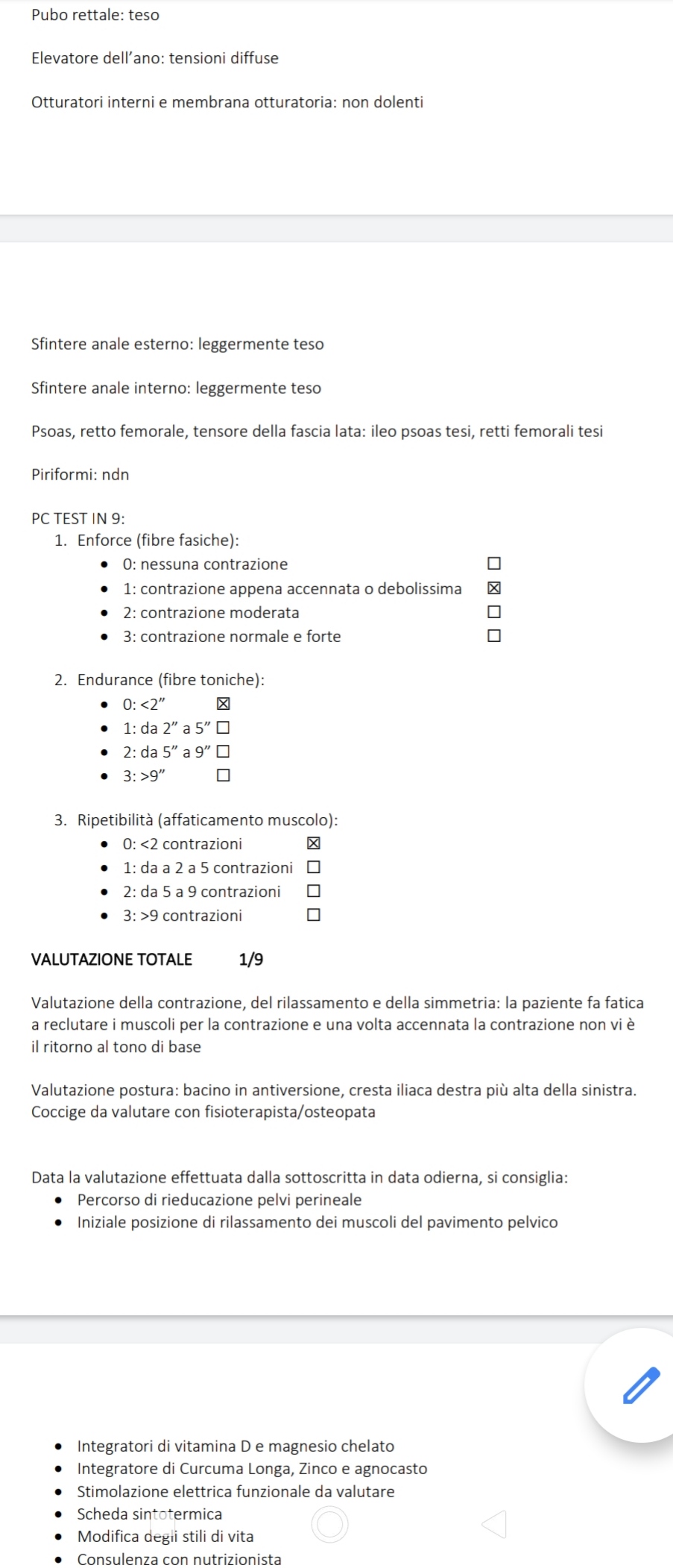 Iaia,la dottoressa a cui mi sono rivolta per il pp è Daniela Carlevale,(se vedi la sua pagina Instagram puoi vedere quanto è preparata in merito!)riceve sia a Frosinone che Roma.. Quello che posso dirvi in merito alla valutazione,anche paragonandola alle altre due che ho fatto (una con un'altra ostetrica e una con un fisioterapista),le differenze che ho notato sono: