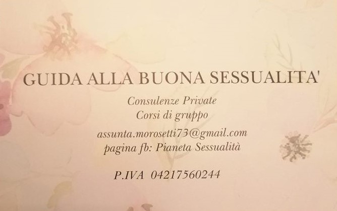 Mi chiamo Assunta Morosetti e sono una consulente sessuale. Dopo numerosi anni di esperienza e formazione nell'ambito della Sessualità, in qualità di Referente e Formatrice presso un’azienda italiana, mi sono specializzata come professionista in Educazione Sessuale. Sono regolarmente iscritta presso l’albo della F.I.S.S. (Federazione Italiana Sessuologia Scientifica).