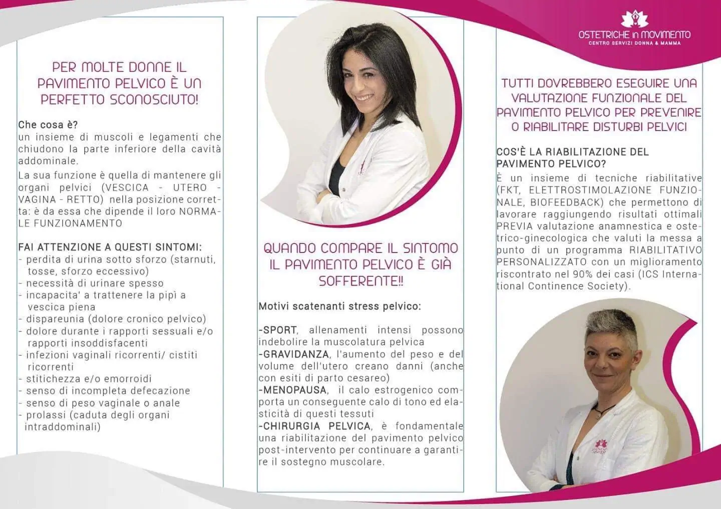 Presso il Centro servizi Ostetriche basilicata esercitano la libera professione la dr.ssa Ferracane Filomena e la dr.ssa Francesca Corrado, esperte in rieducazione e Riabilitazione del Pavimento Pelvico.